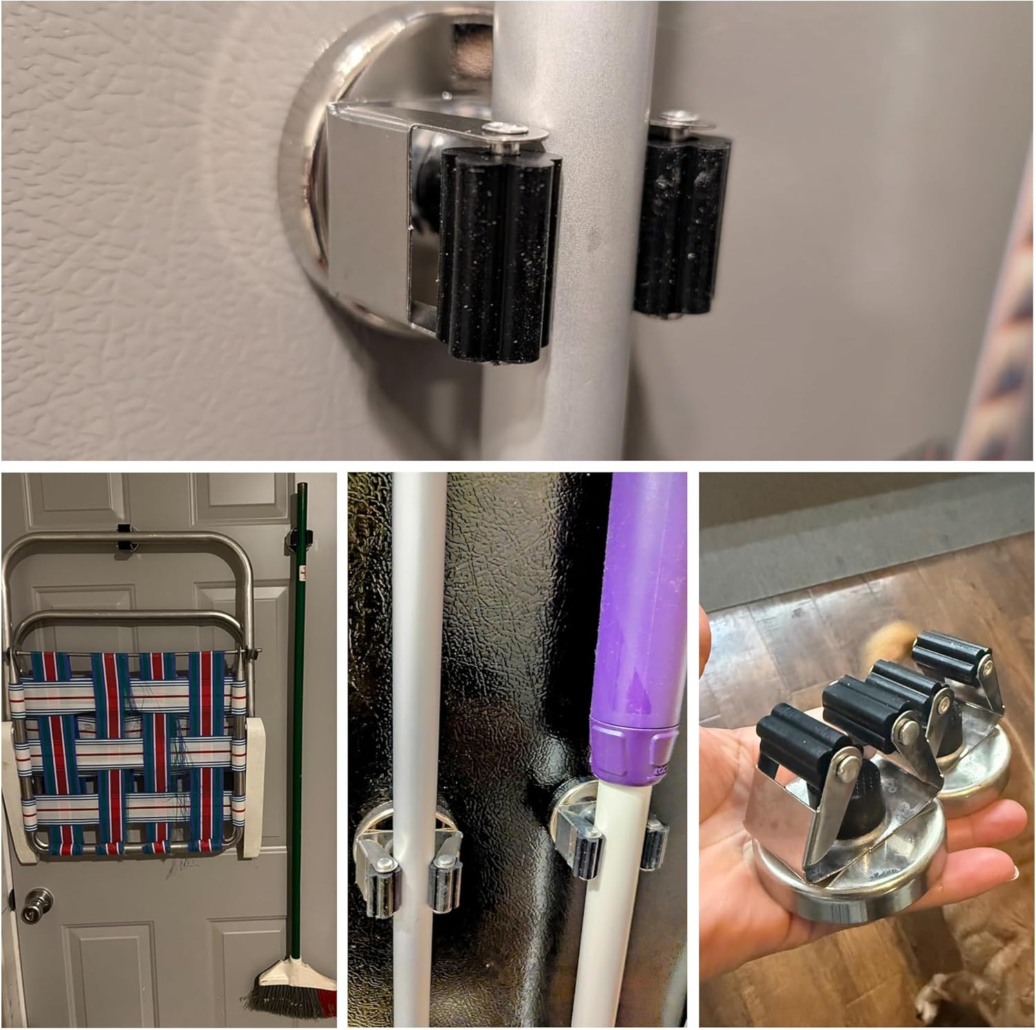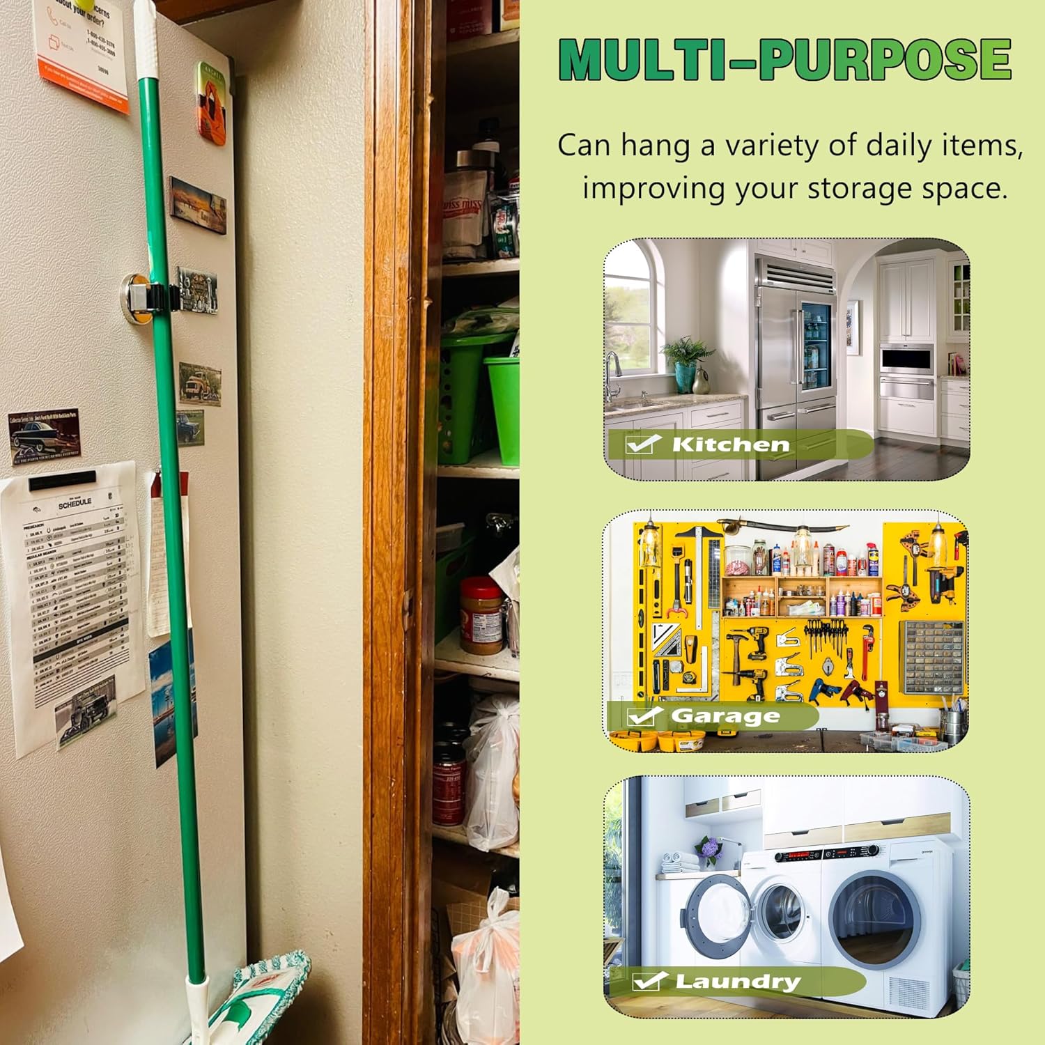 - [Multi-purpose Magnetic Mop Clip]: This mop holder can be widely used for storage to keep your laundry room, garden, garage clean and tidy. From umbrellas, mops, shovels, brooms to gardening or hardware tools, we can use this holder to hold them all