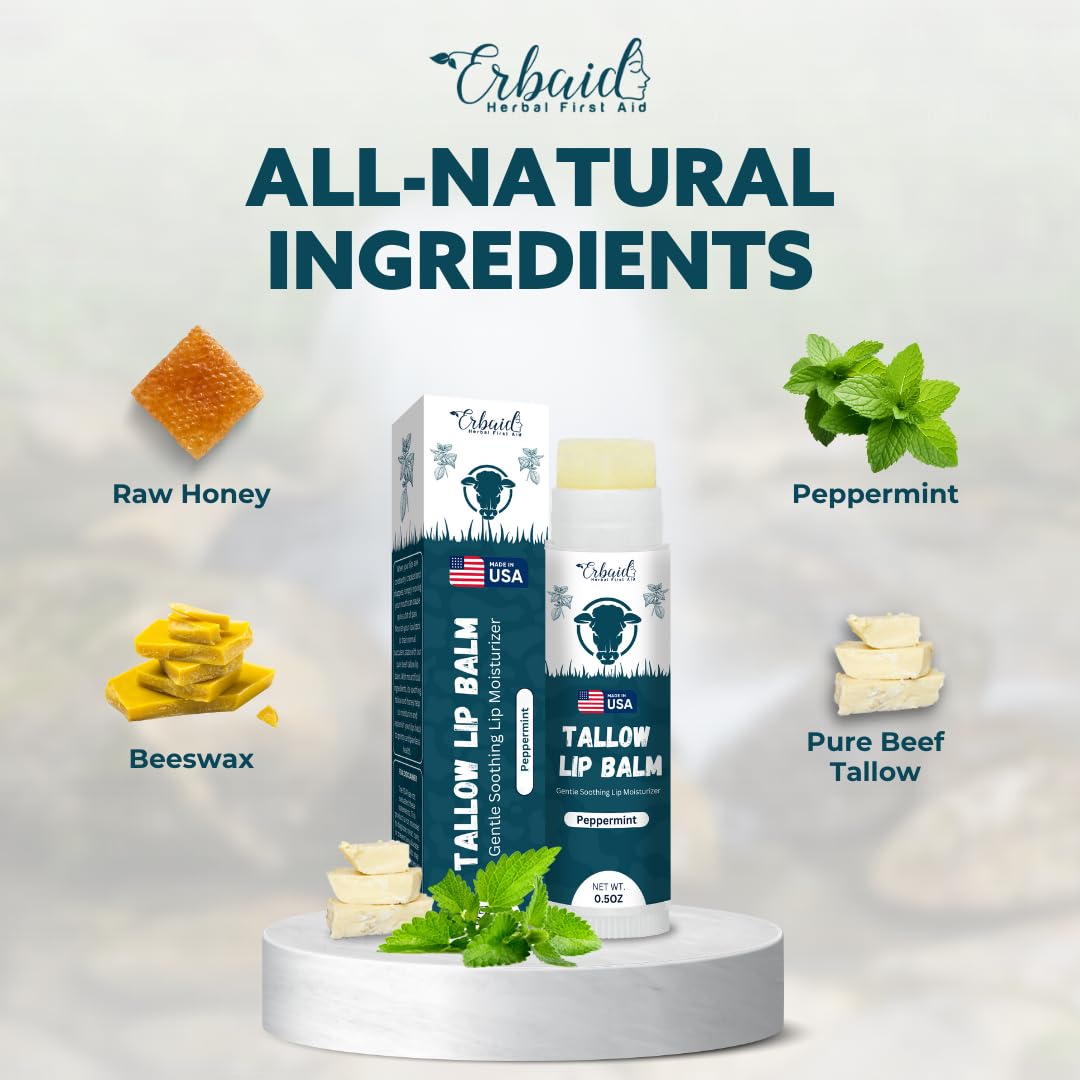 - INTENSELY HYDRATING FORMULA: Immerse your lips in moisture with our grass-fed organic beef tallow lip balm with peppermint flavor. Crafted with natural fats, akin to those in human skin, it maintains your lips' moisture barrier for enduring hydration and velvety softness.