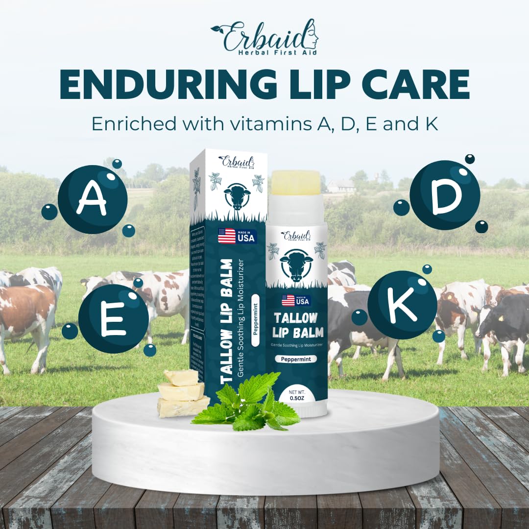 - VITAMIN-INFUSED NOURISHMENT: Elevate your lip health with our tallow lip balm enriched with vitamins A, D, E, and K. Sourced from grass-fed beef tallow, this blend promotes overall lip health, nurturing and repairing with essential nutrients.