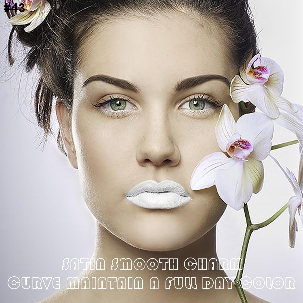 evpct 2Pcs White Matte Liquid Lipstick Lip Gloss Stain and Retractable Lip Liner Makeup Set for Women Long Lasting Waterproof 24 Hours Permanent Lipstick labial mate larga duracion 24 43#
