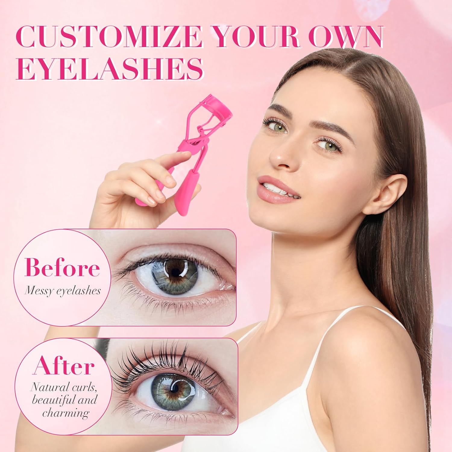 Eyelash Curler with Pads, Lash Curler 2 Pcs with 10 Extra Silicone Replacement Pads, Comfortable Grip for Effortless Curling – Eyelashes for The Perfect Eye Contour (Barbie Pink)