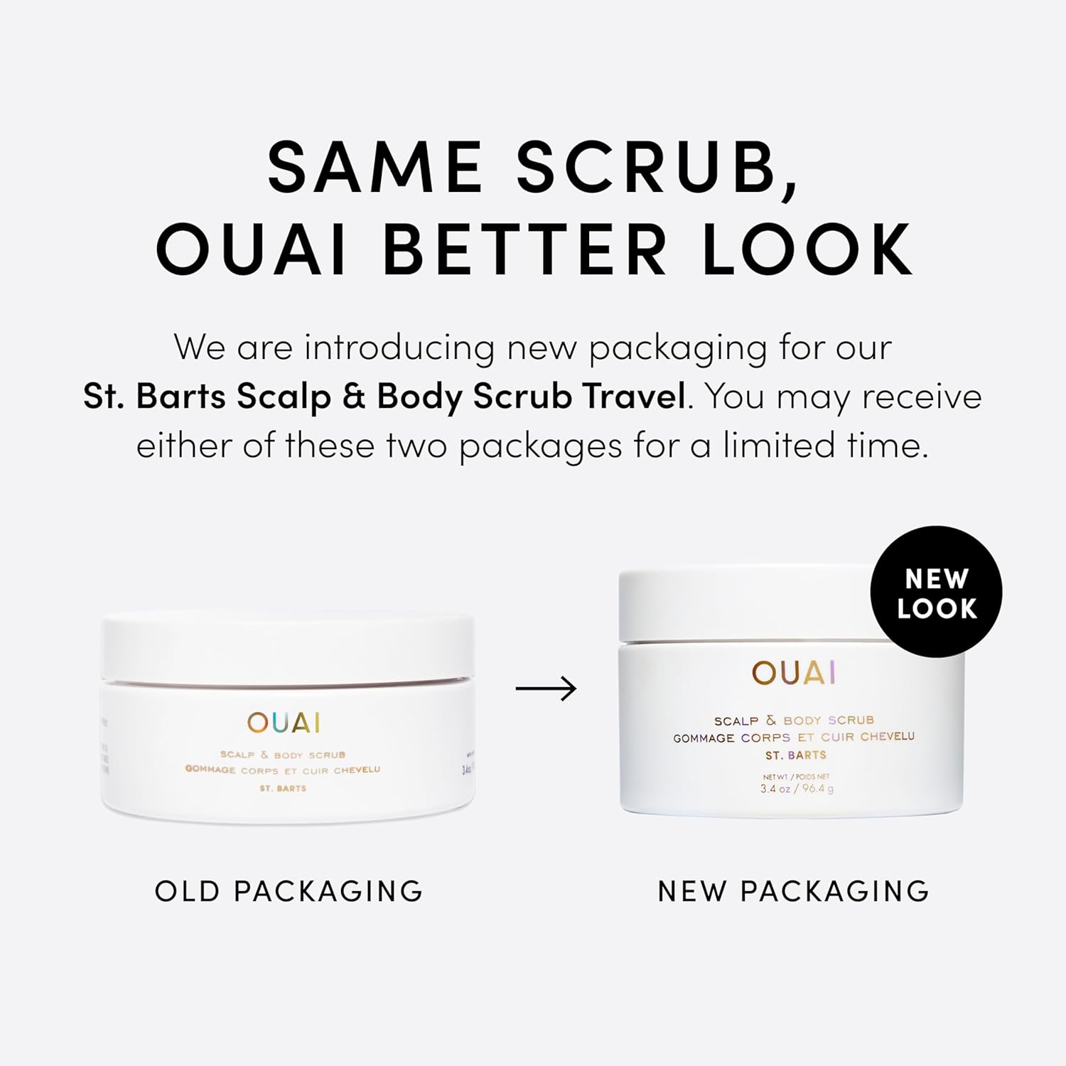 OUAI Scalp & Body Scrub, St. Barts Travel Size - Exfoliating Body Scrub with Sugar & Coconut Oil Blend for Smooth, Moisturized Skin - Gentle Scalp Exfoliator for Removing Product Build Up (3.4 oz)