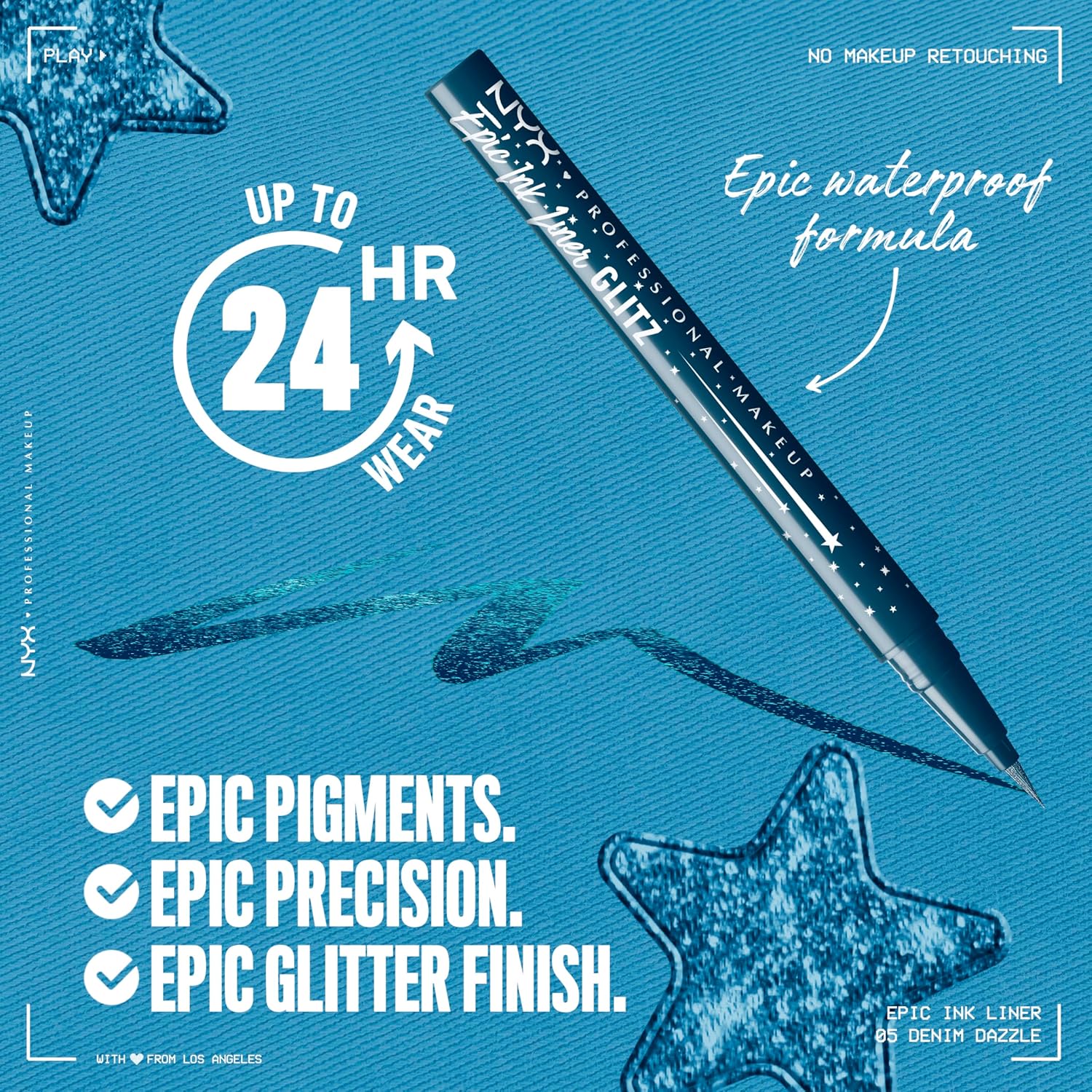 NYX PROFESSIONAL MAKEUP Epic Ink Glitz Liner, Waterproof Metallic Liquid Eyeliner with Vegan Formula - Denim Dazzle (Shimmer Deep Navy)