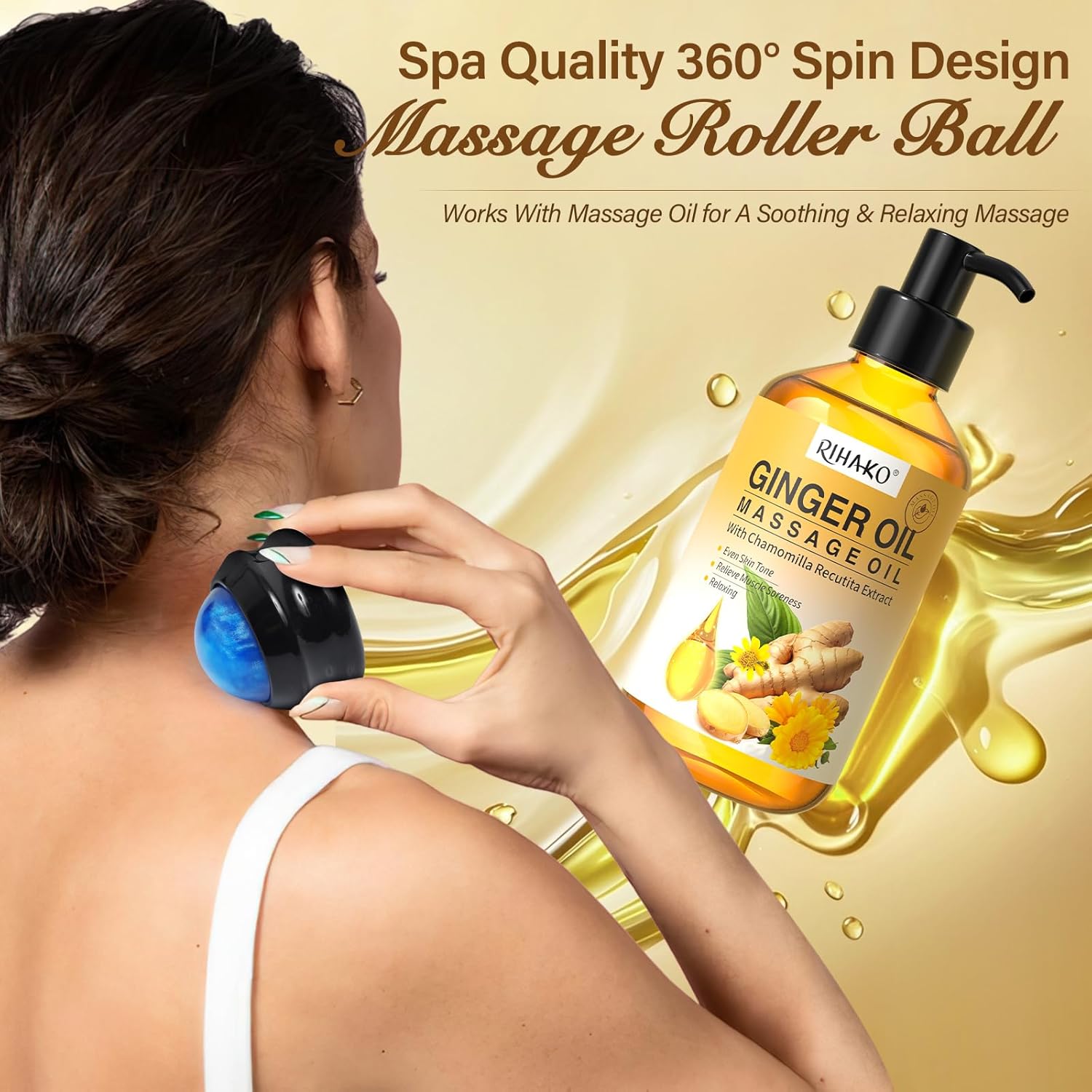 • ✨ At-Home Spa Experience – Skip the salon! The included 360° massage ball tool glides smoothly to relieve knots and tension while enhancing absorption of oils for a professional massage feel right at home.