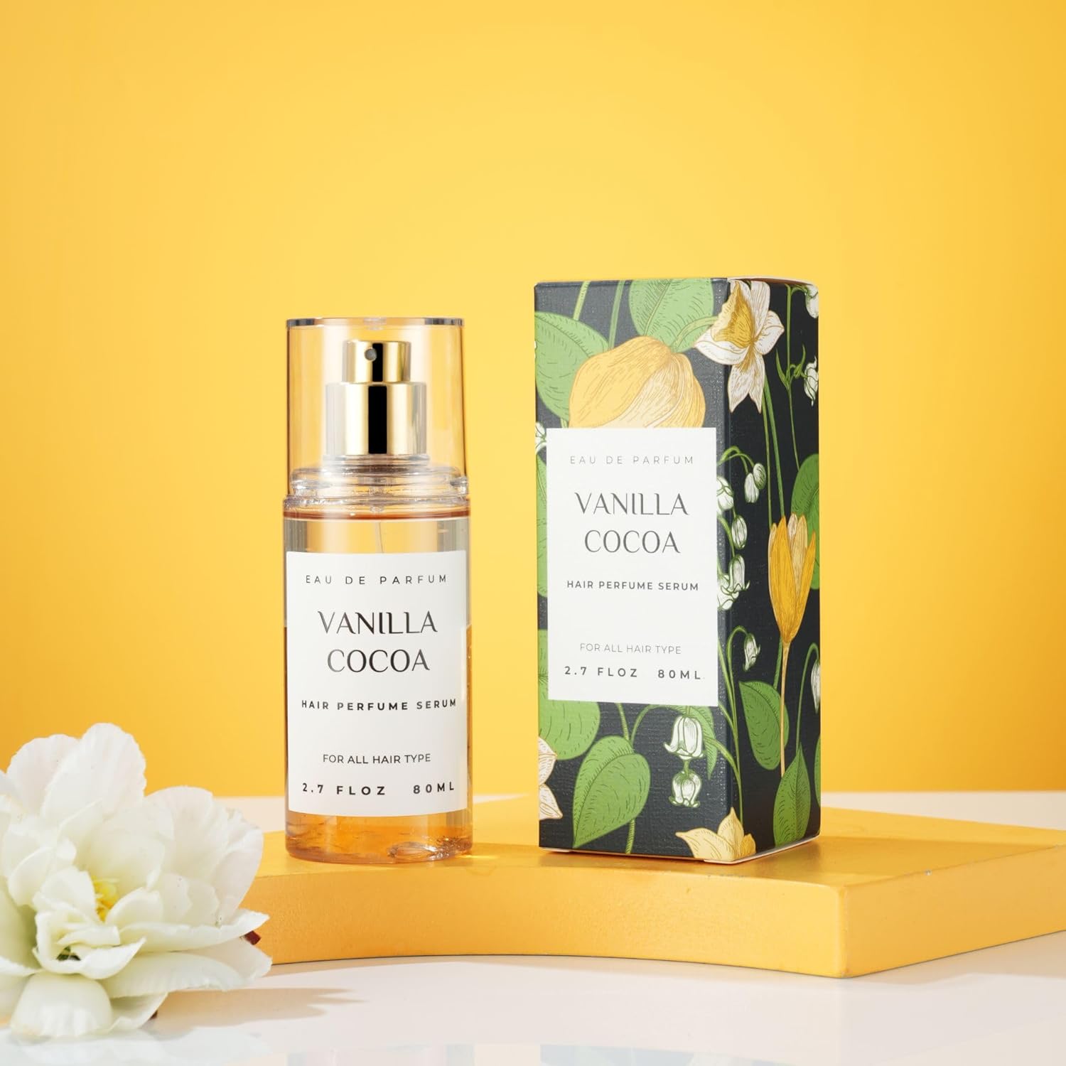 Hair Perfume for Women, Summer Lightweight Long Lasting Fragrance Mist - 3:7 Hydrating Serum Alcohol Free Formula, Argan Oil Scented Hair Spray with Keratin & Elastin (Vanilla Cocoa) 2.7 fl oz