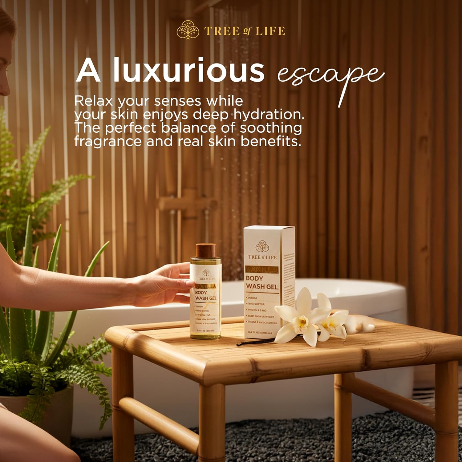 Tree of Life Vanilla Body Wash Gel - Moisturizing Shower Gel with Jojoba Oil and Shea Butter Hydrating Body Wash for Sensitive Skin and All Skin Types, 16.9 fl oz