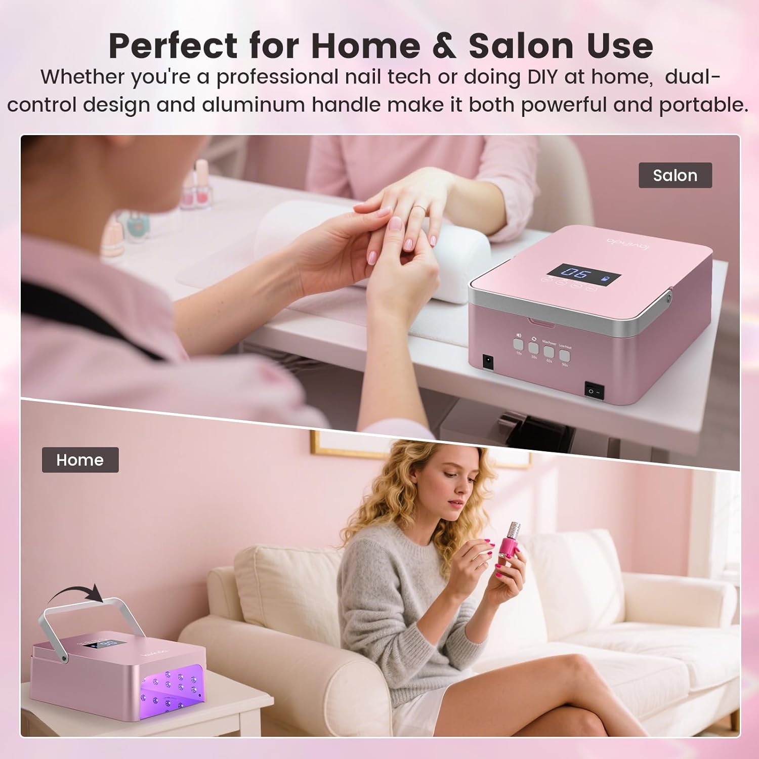 - 【Rose Gold Finish & Professional Nail Lamp Design】: With its exclusive rose gold metallic finish, the Lavinda NovaGlow Pro nail lamp combines style and durability. The acetone-resistant ABS body is built for long-term salon use. Backed by Lavinda’s 7+ years of expertise in nail technology, this cordless nail dryer is a luxury choice for both professionals and DIY nail lovers.