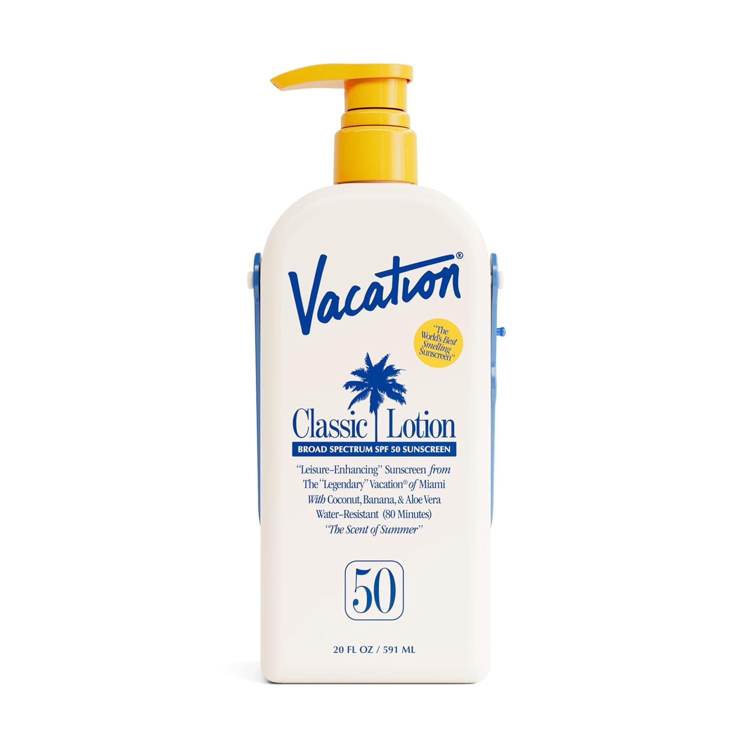 Vacation Classic Lotion SPF 50 Sun Jug, Broad Spectrum Bulk Sunscreen SPF 50, Water Resistant Sunblock, Suntan Lotion with Pump, Vegan, Family-Size, 20 Fl. Oz.