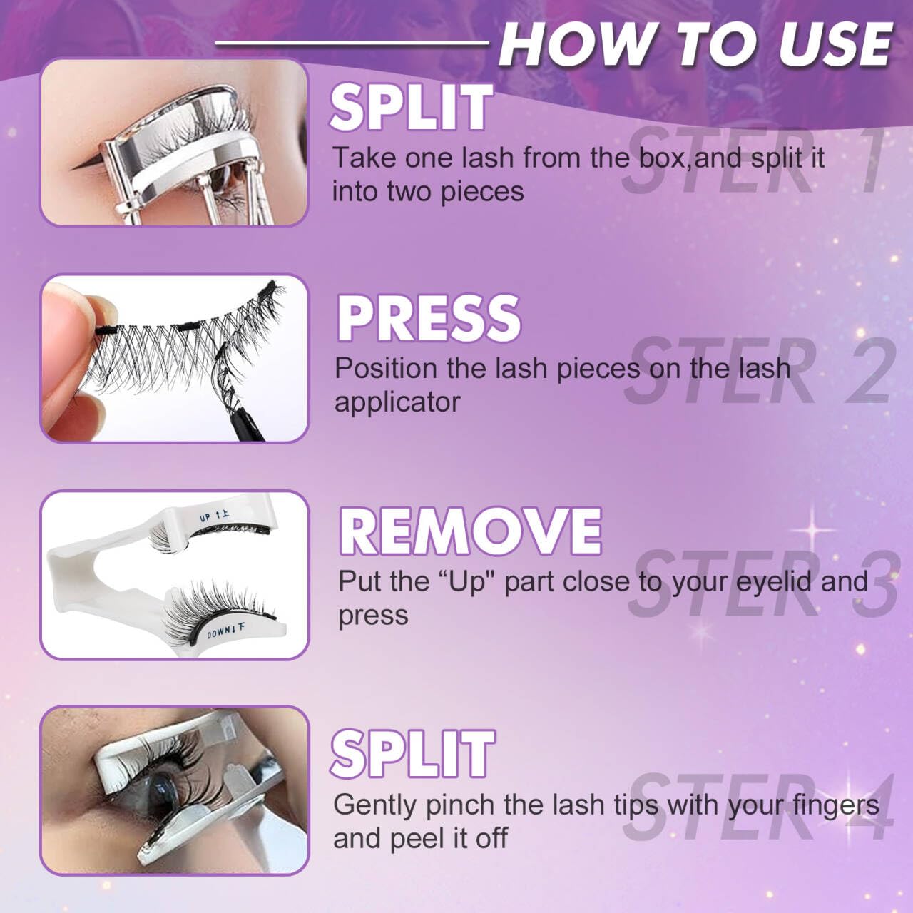 - 【Perfect for Everyone】 Whether you're a beauty pro or a complete beginner, these lashes make getting a stunning lash look easier than ever. Forget the messy glue or complicated application—just pop them on in seconds, and you’re good to go. Quick touch-ups, lasting wear, and a natural, eye-catching look, all with minimal effort.