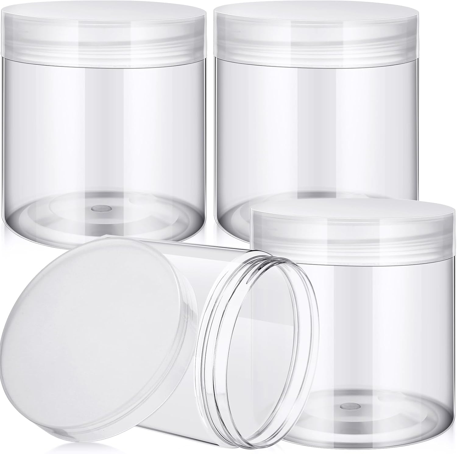 SATINIOR 24 Pieces Empty Clear Plastic Jars with Lids Round Storage Containers Wide Mouth for Beauty Product Cosmetic Cream Lotion Liquid Butter Craft and Food (Clear Lid,16 oz)