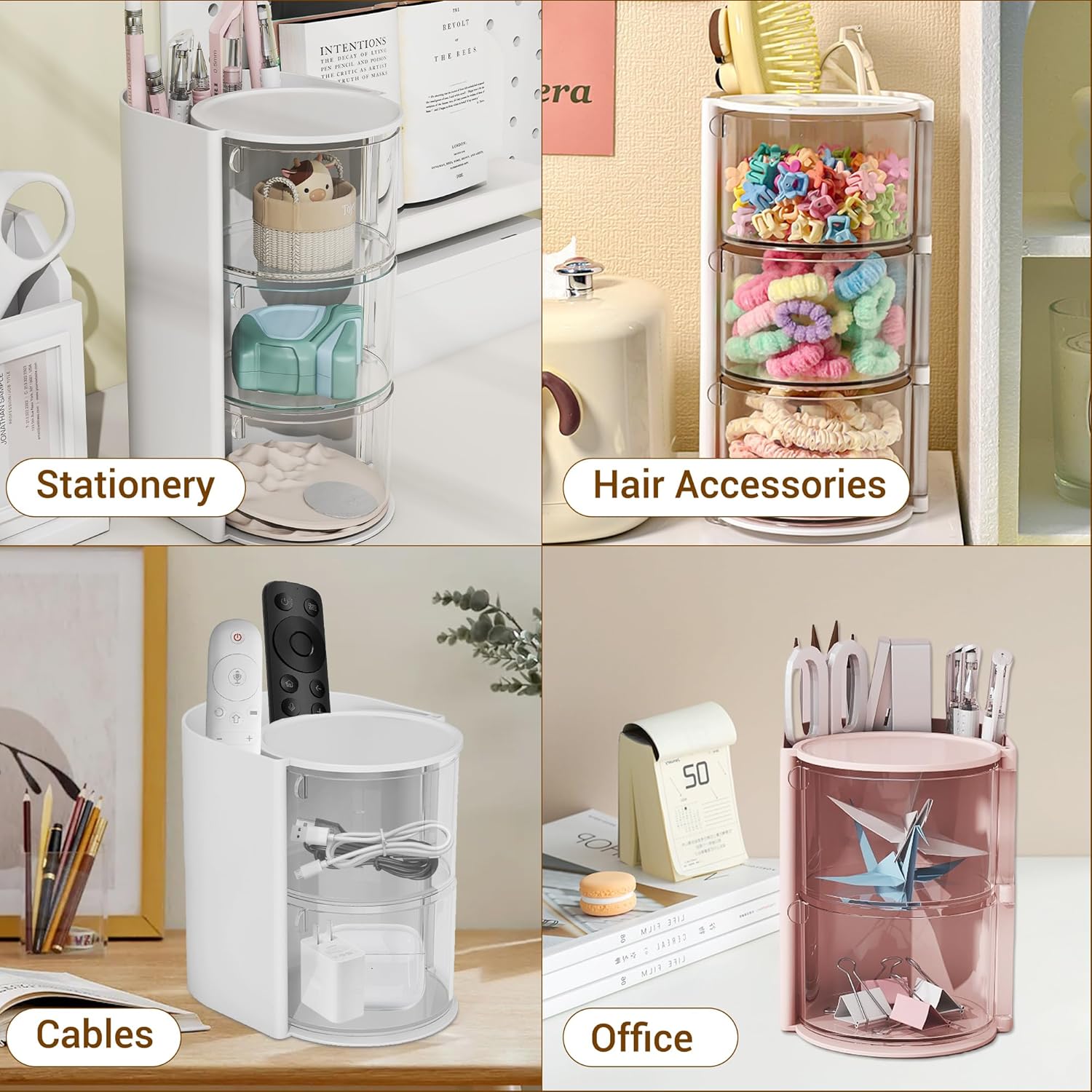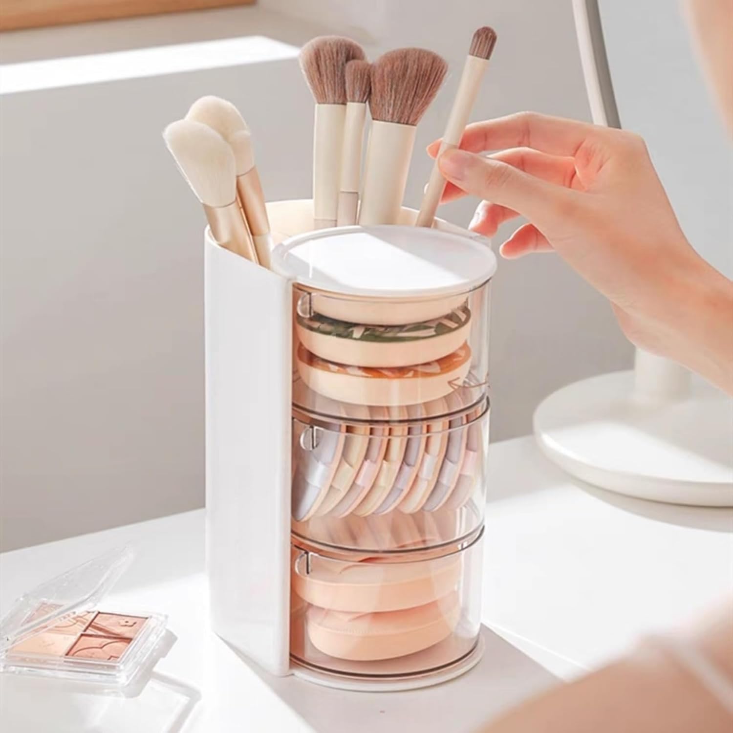 - â ăRotatable DesignăThe hair tie organizer unique 180° rotatable design allows you to quickly find the powder puff, beauty egg, cotton swab or hairpin you need with just a slight turn, without the hassle of searching, saving you makeup time
