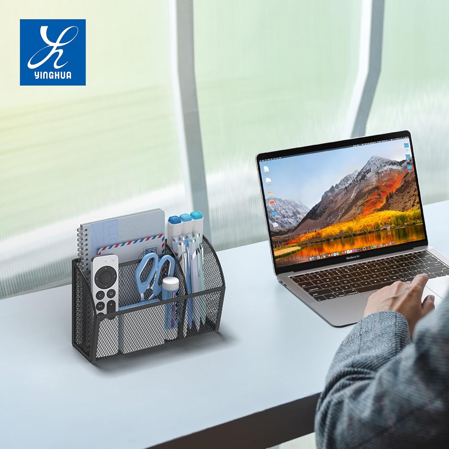 - Smart 3-Compartment Design for Better Organization โ Featuring three neatly divided sections, this sleek black pen organizer for desk keeps pens, clips, sticky notes, and desk supplies neatly sorted. The open mesh design allows easy visibility and quick access, making it an ideal desk organizer caddy for a clutter-free workspace, home, or school
