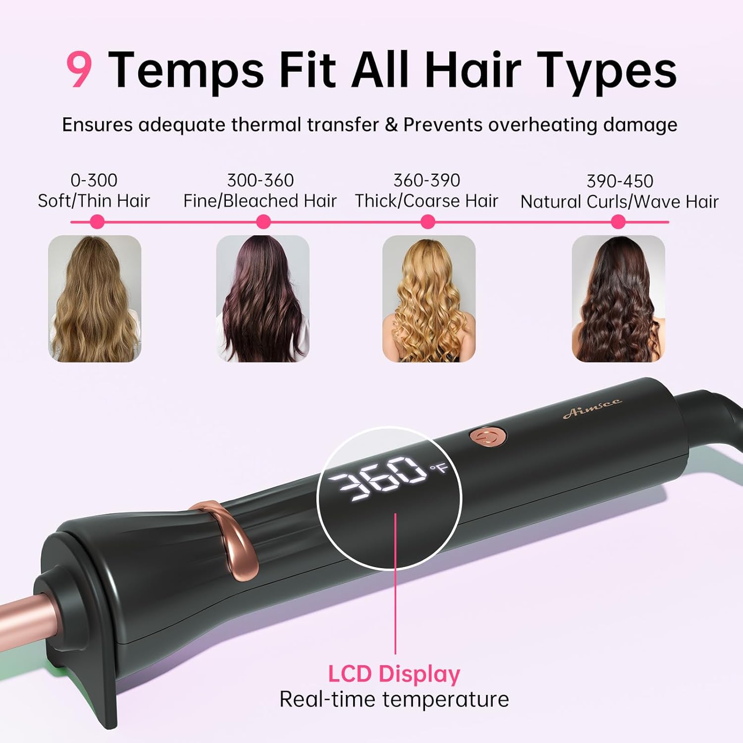 - Flexible Styling with 9 Temp Control: Featuring 9 adjustable temperatures (300-450Β°F), this skinny curling iron adapts to fine, thick, or heat-sensitive hair. The 2.5m 360Β° swivel cord ensures flexibility during styling, making it easy to reach all areas without tangling. Beginners can start at low heat and gradually increase β match settings to achieve the desired effect, whether that be tight curls or soft, undone waves.
