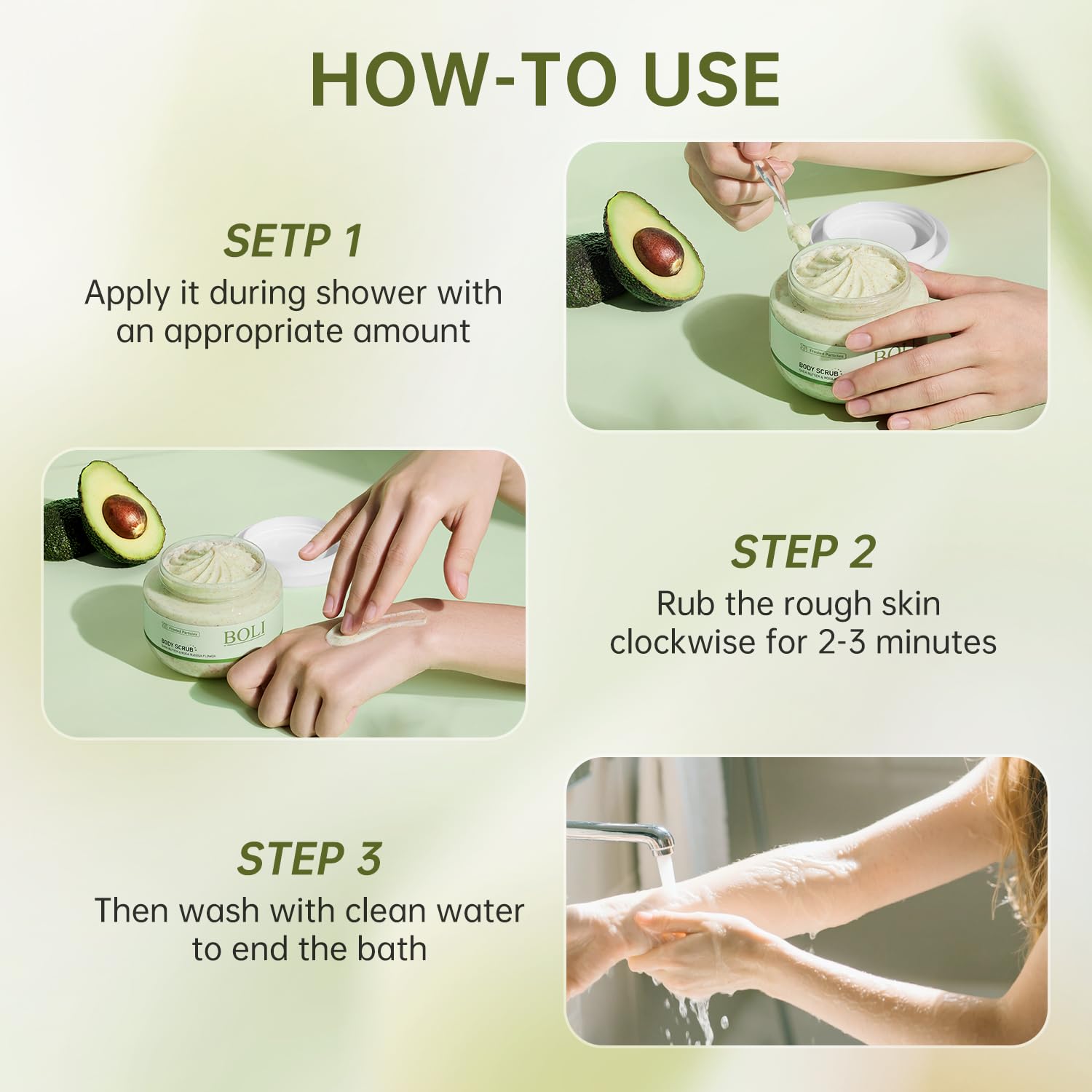 BOLI Shea Butter Body Scrub, Walnut Shell Powder Exfoliating Moisture Scrubber Deep Cleansing Nourishes for Smooth (250g, Shea Butter)