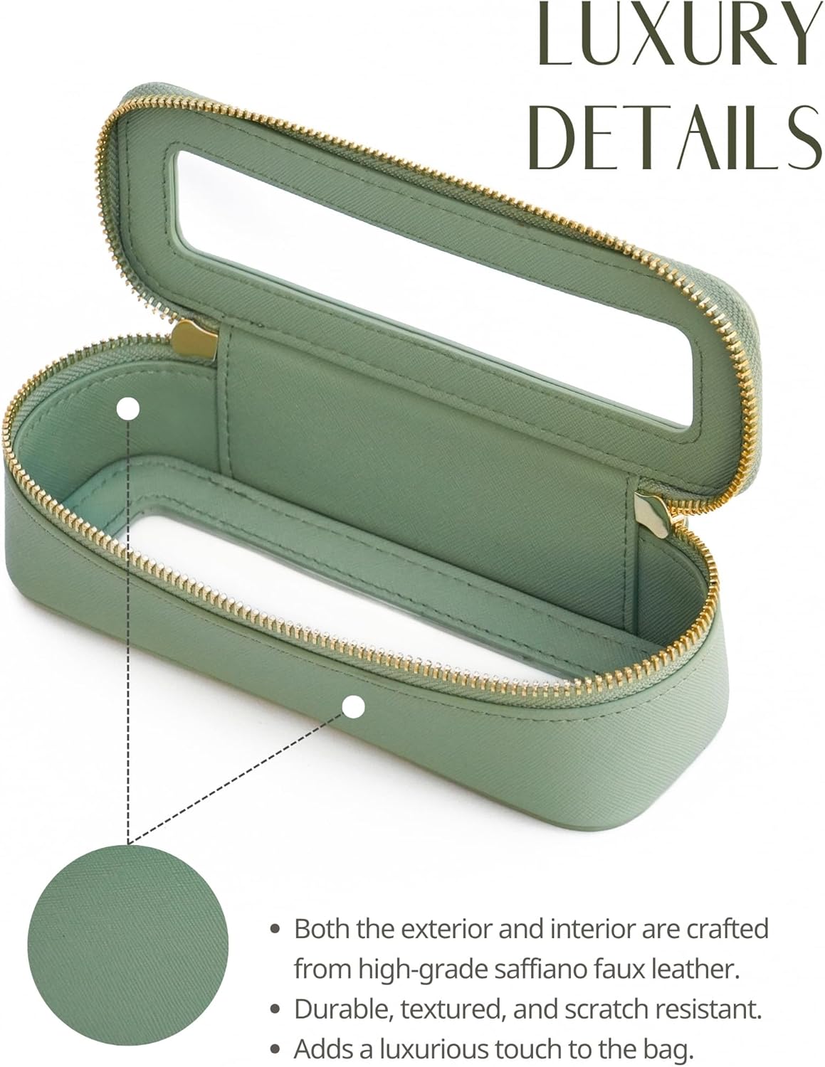 • [Slim Brush Makeup Bag] - This slim makeup bag is 7.5'' x 2.5'' x 2.1'' (19.1cm x 6.4cm x 5.3cm), ideal for storing makeup brushes and daily mini essentials like lip balms, hair ties, jewelry, Air Pods, charging cords, and medications. Slip it into your purse, backpack, everyday tote, or travel bag for convenient access to your essentials.