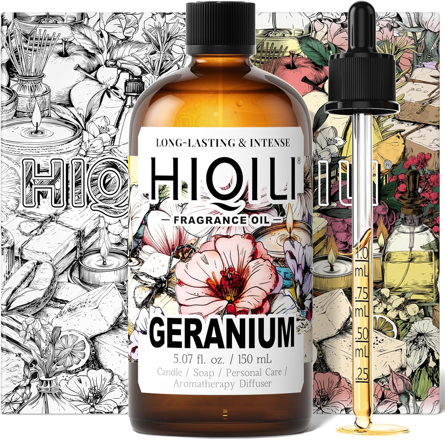 HIQILI Geranium Fragrance Oil for Home Diffuser, Relaxation, Essential Oil for Candle & Soap Making, Long-Lasting Scents, Car Freshies - 5.07 Fl Oz