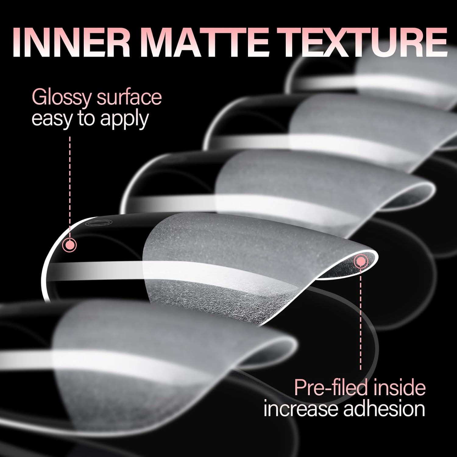 - Upgraded Half Matte Square Nail Tips: Our full cover half matte false nail tips are made of high-quality materials, breathable, lightweight and durable, making your nails look more natural and beautiful. You can easily extend your nails with AILLSA pre-buff gel nail tips!Half matte texture design, which can increase friction and adhesion.