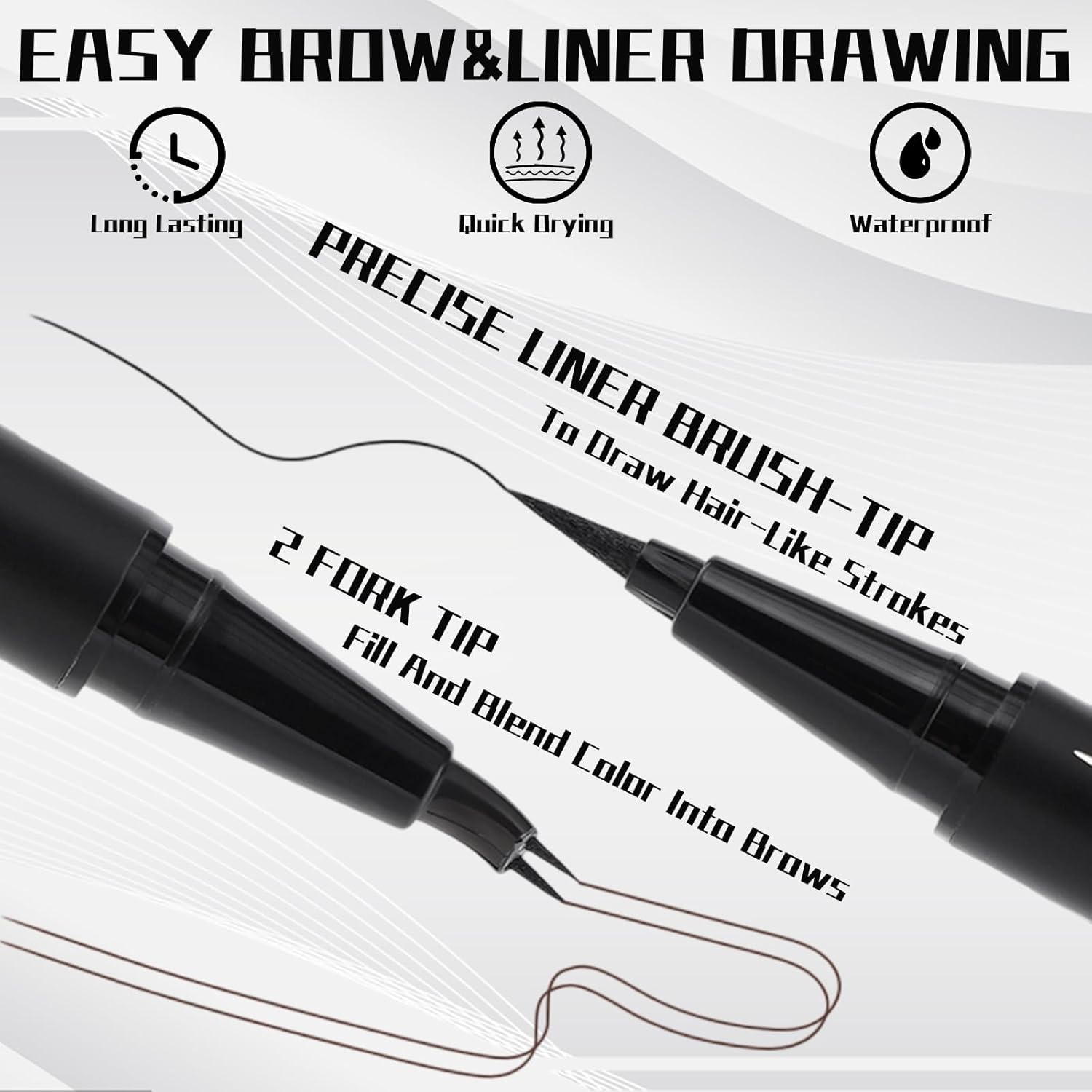 - 【Long - Lasting&Waterproof】Our waterproof eyebrow pen eyeliner set is formulated to last all day. It won't smudge or fade, even in hot and humid conditions.Whether you're sweating at the gym or caught in the rain,the smudge - proof and waterproof formula ensures that your eyebrow and eyeliner stay intact. You can trust this set to keep your makeup looking fresh and perfect from morning till night. This liquid eyebrow pen waterproof is ideal for daily wear and special occasions.
