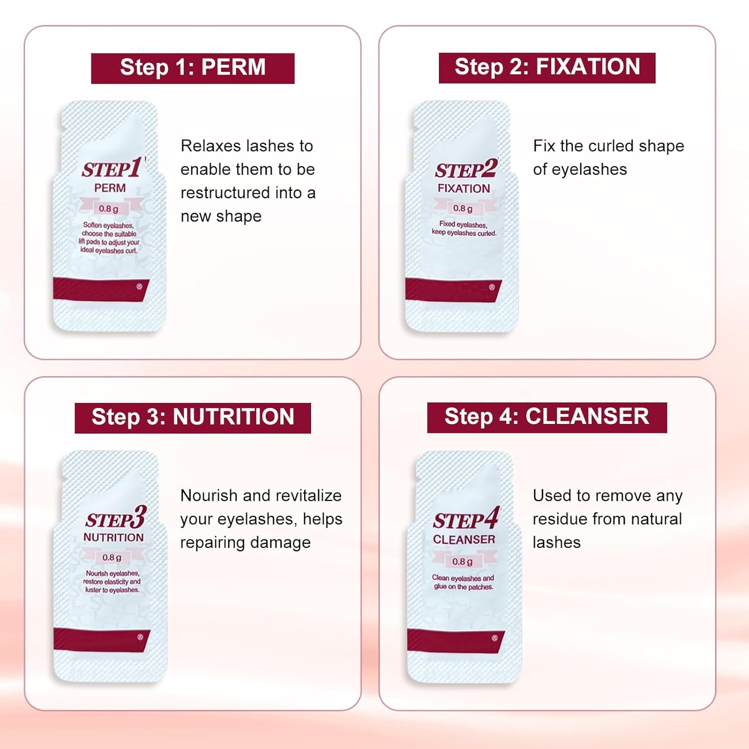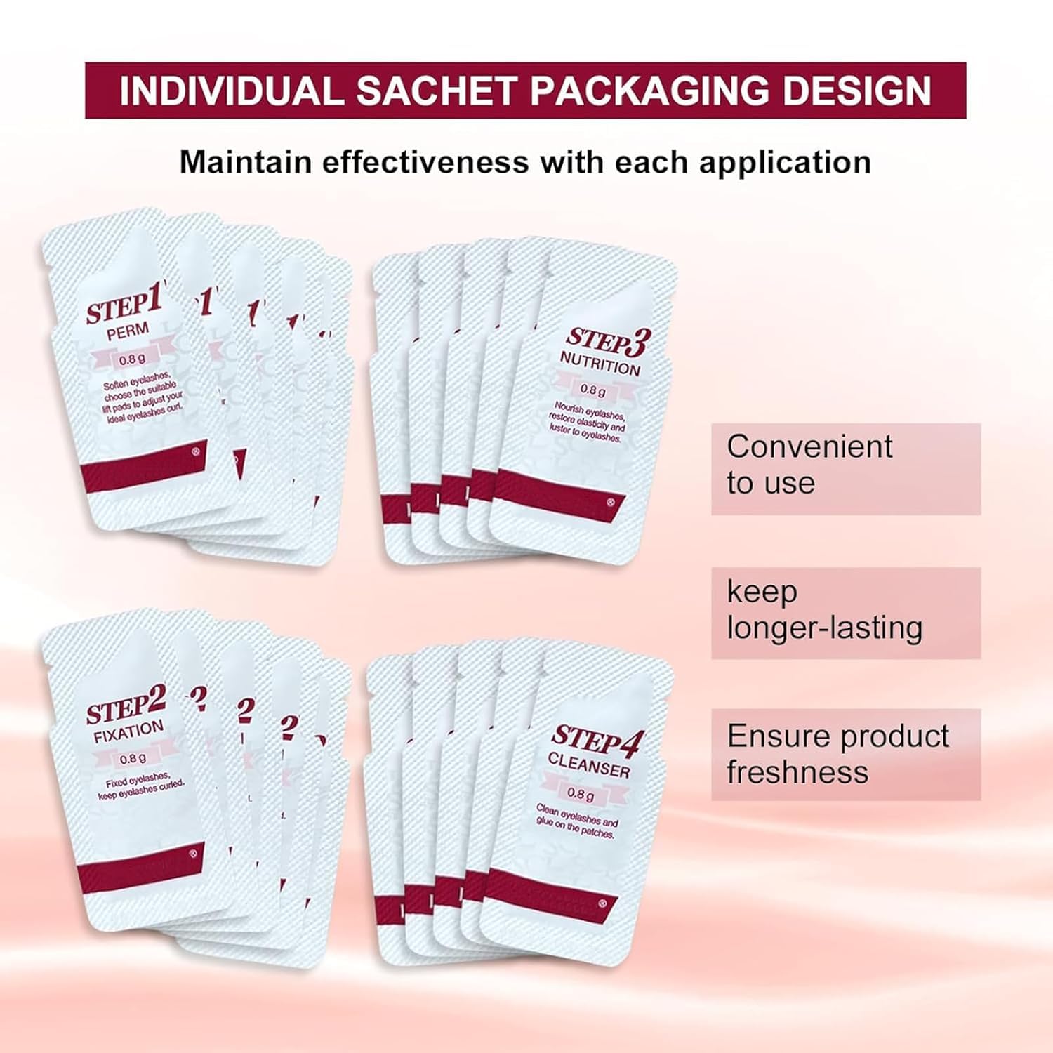 - Easy to Use: The kit features detailed step-by-step instructions for lash curling. Design with Individual pouches, preserving freshness and ensure optimal result.The pouch design also enables dosage control, cut down on product waste.