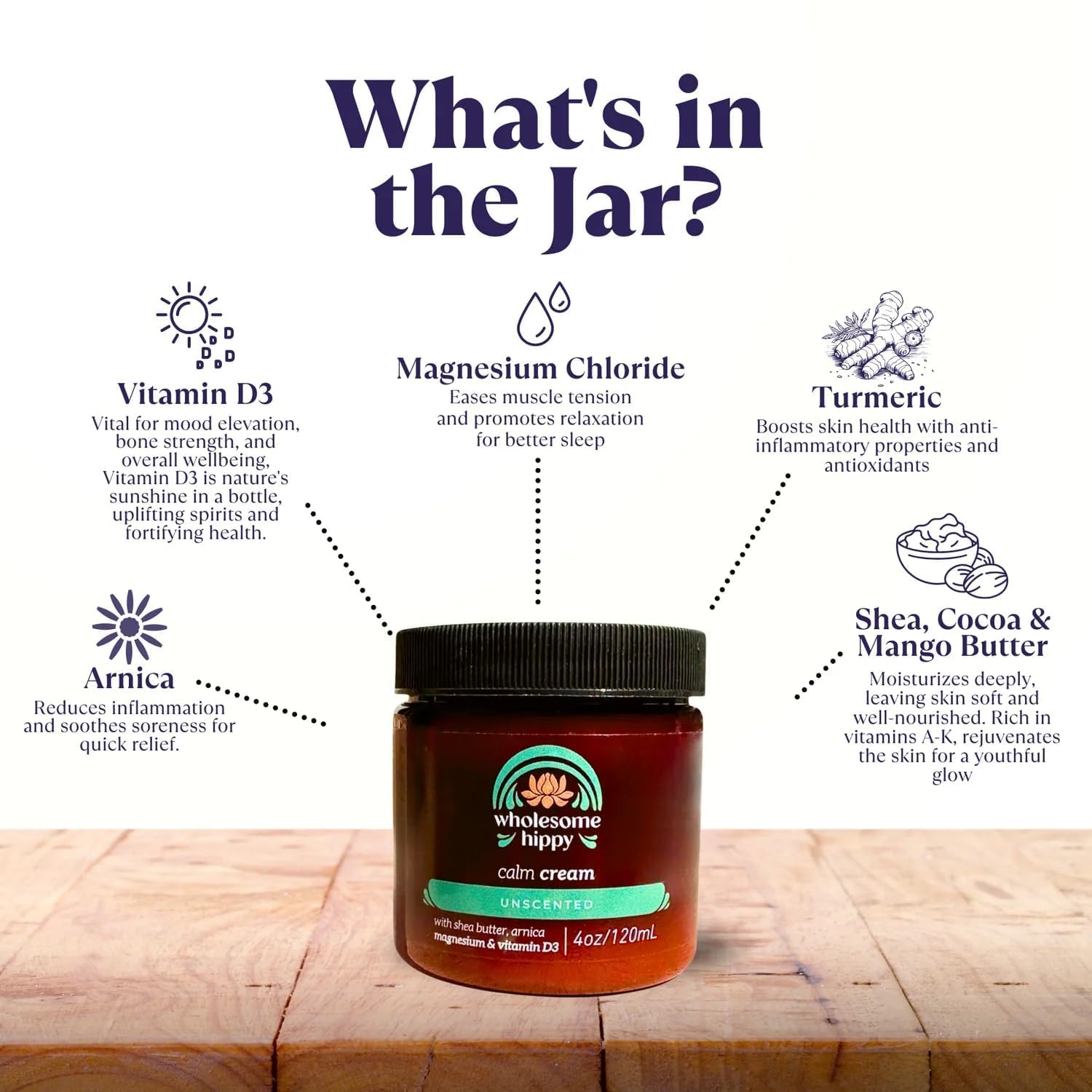 - All-Natural Ingredients: Magnesium calm cream Crafted from all-natural ingredients, our formula blends magnesium, vitamin D3, arnica, turmeric, Shea butter, cocoa butter, and mango butter.