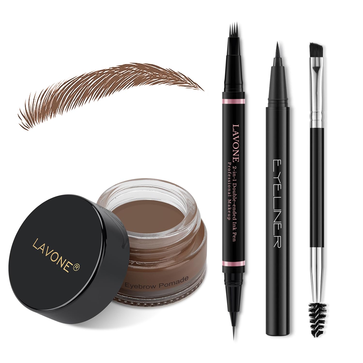 - 【Eyebrow Pencil Makeup Kit】: LAVONE eyebrow kit with 2-in-1 microblading brow pencil, eyebrow pomade, eyeliner and dual-ended brow brush. It instantly outlines, defines & fills in your brows no matter how much (or little) eyebrow hair you have. 1 minute to create flawless, smooth, symmetrical, fuller, and natural looking brow! It’s long-lasting, smudge-proof, and waterproof. Your brows will stay in place all day long.
