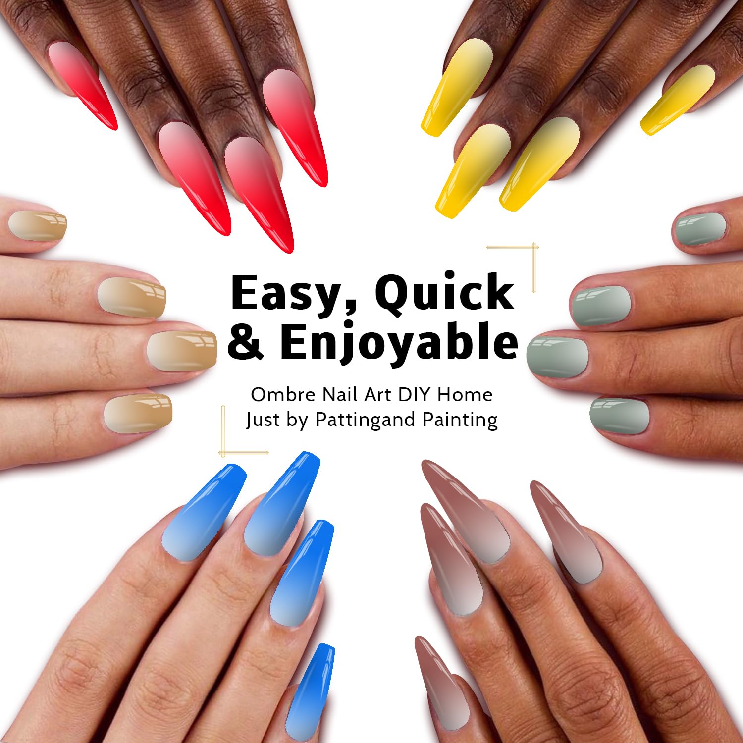 - 【HAVE FUN:】Karroy ombre nail gel will bring you great fun by self-coloring mixing, sponge-patting painting, brushes drawing & dotting, ect. It's easy, colorful, and wonderful!