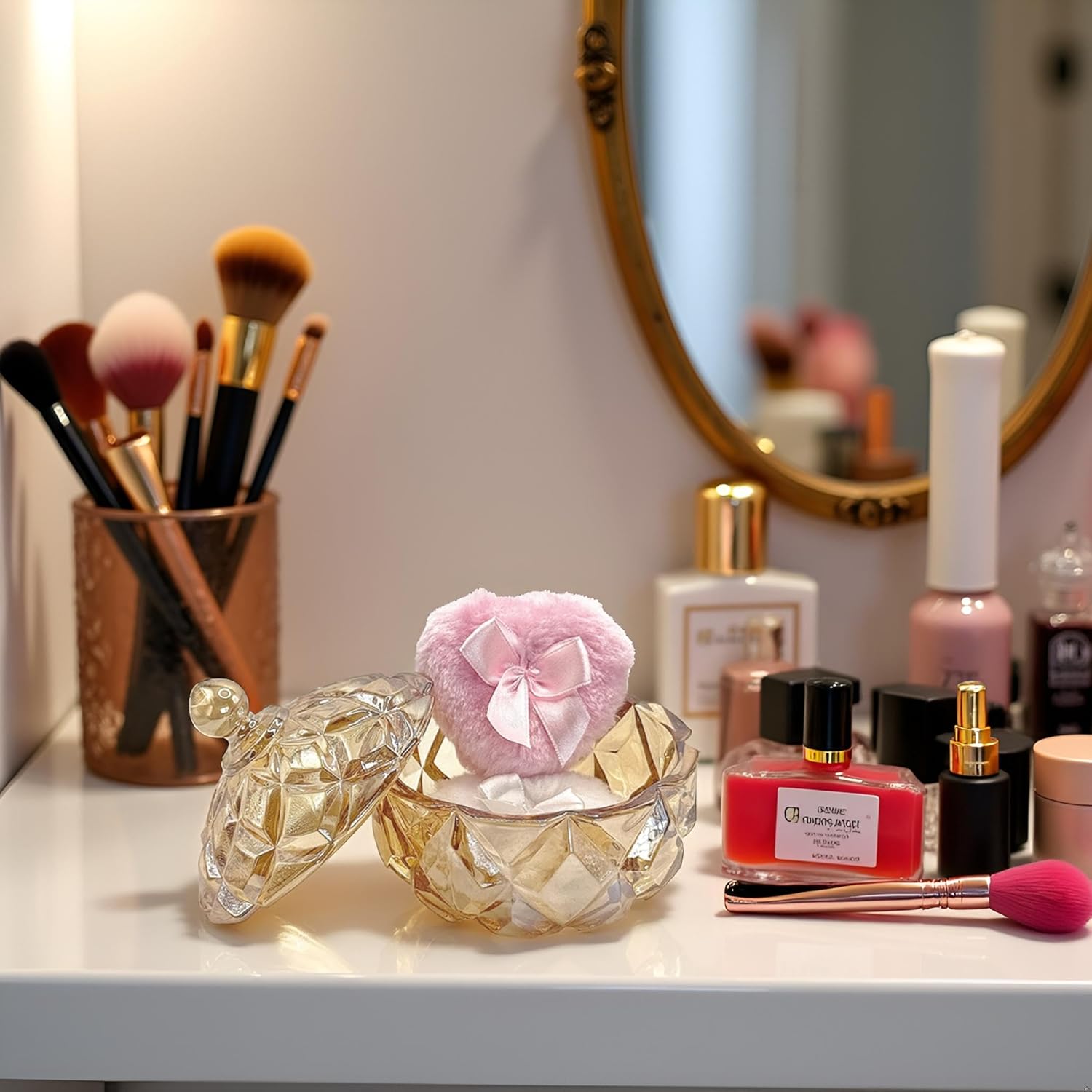 - 【Durable & Easy to Clean】This glass powder puff case is made of high quality glass material, beautiful and durable. This product is not a sealed jar, easy to clean and daily care, will not take up too much space, but can store your daily trinkets and keep your items organized.