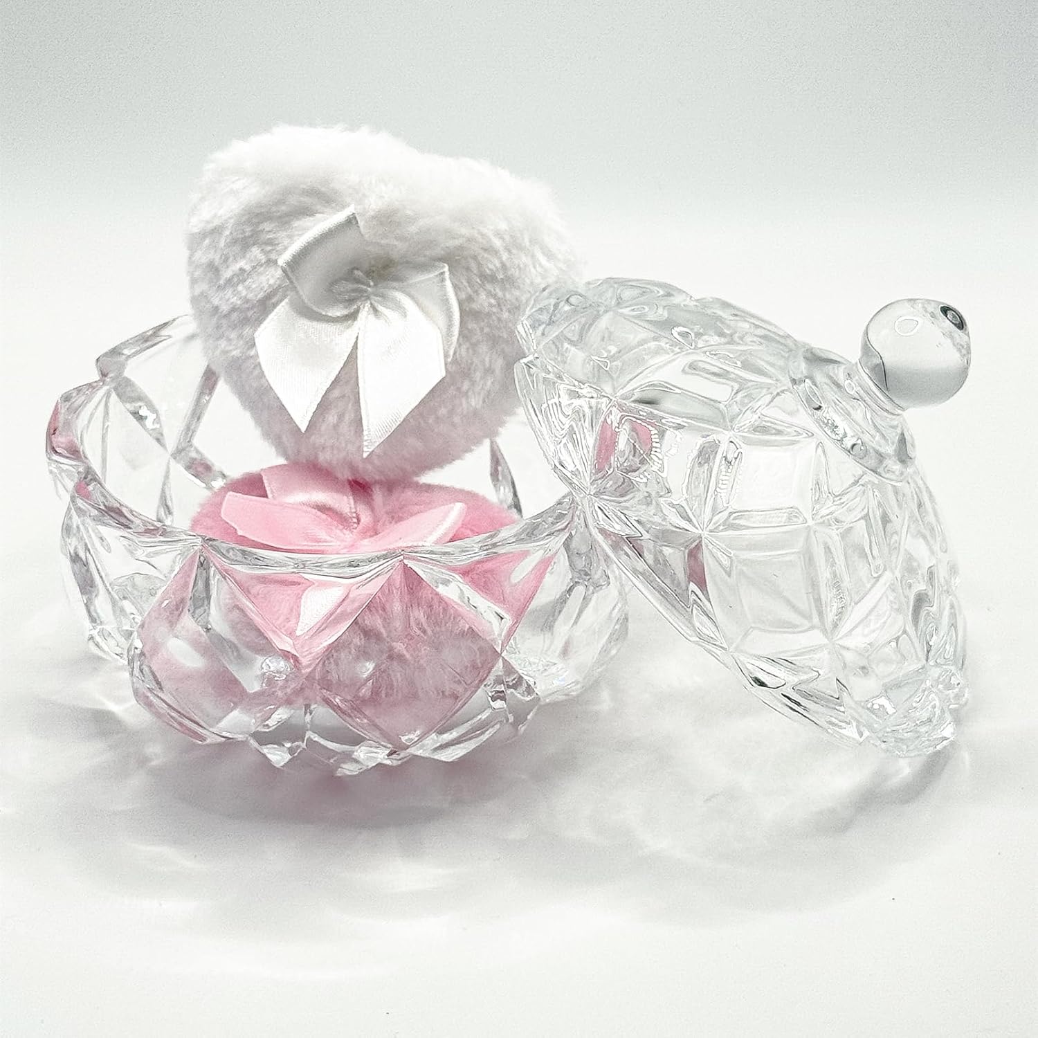 - 【You will get】 1 x Glass Powder Puff Case, reusable one white powder puff and one pink powder puff. Made of clear glass, both aesthetic and ceremonial, suitable for gift or vanity table decoration. Powder puffs are soft in texture, reusable, wet and dry