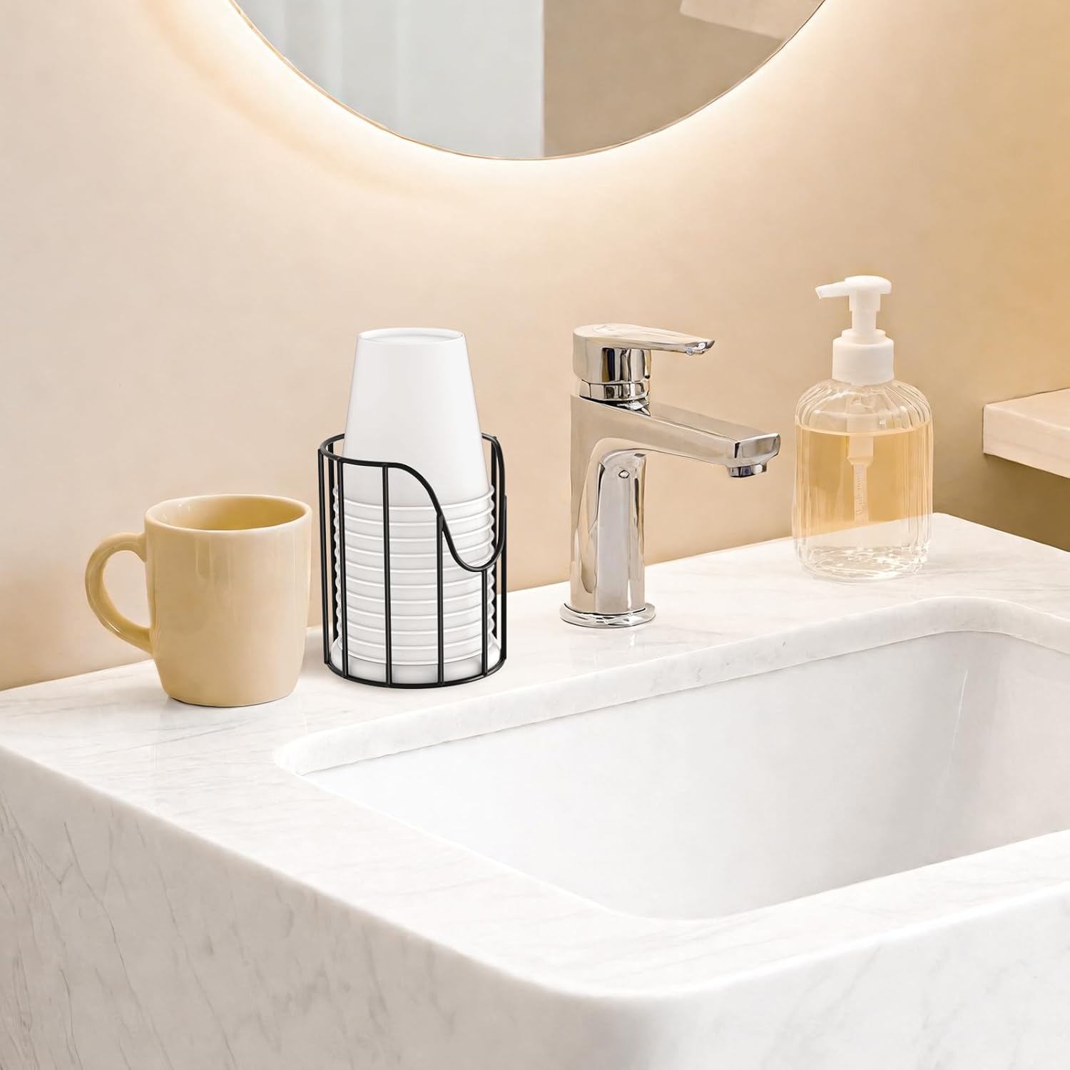 - Multi-Scene Application: With a compact size, Luxspire bathroom cup dispenser 3 oz fits anywhere. It can be placed in the bathroom, kitchen, living room, bedroom, as well as in restaurants, coffee shops, and other places for easy cup access anytime.