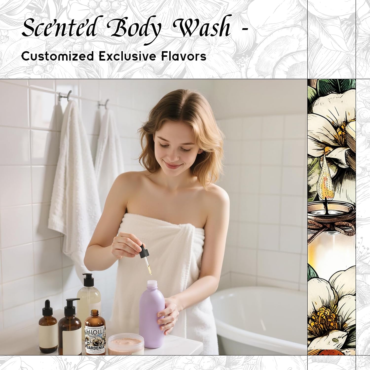 HIQILI Gardenia Fragrance Oil for DIY Candle, Soap & Perfume Making, Add to Essential Oil Diffuser, Body Wash, Long-Lasting - 5.07 Fl Oz