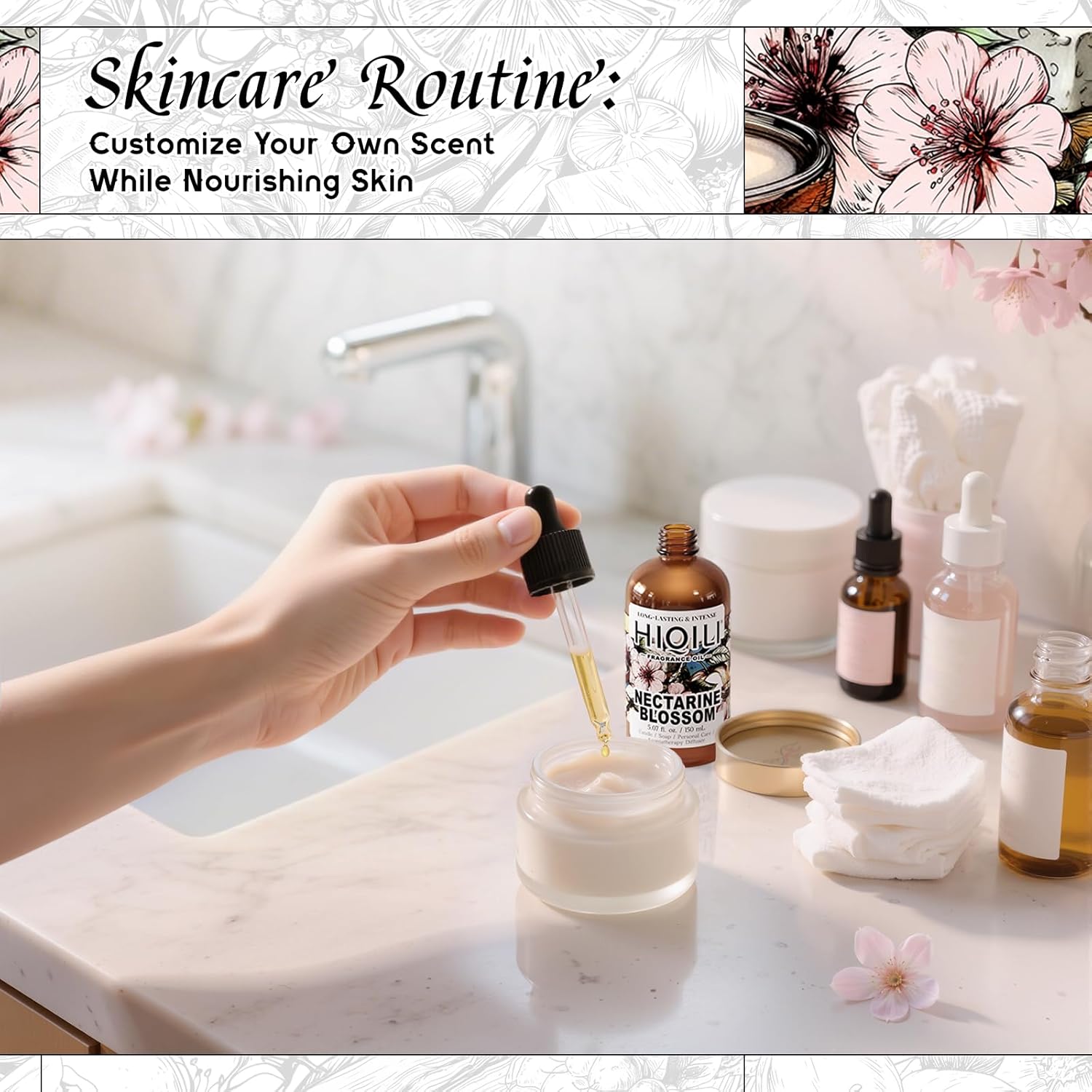 HIQILI Nectarine Blossom Fragrance Oil for Candle & Soap Making, Essential Oil Diffuser Use, Add to Body Lotion, Dryer Balls - 5.07 Fl Oz
