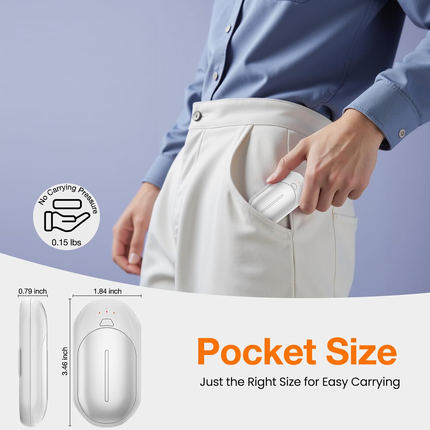 - AI Hand Warmers Rechargeable 2 Pack, AI Smart Chips 6000mAh Electric Hand Warmer, 20Hrs Long Safe Heat, Portable Pocket Heater, Gifts for Christmas, Outdoor, Golf, Hunting, Camping Accessories - White