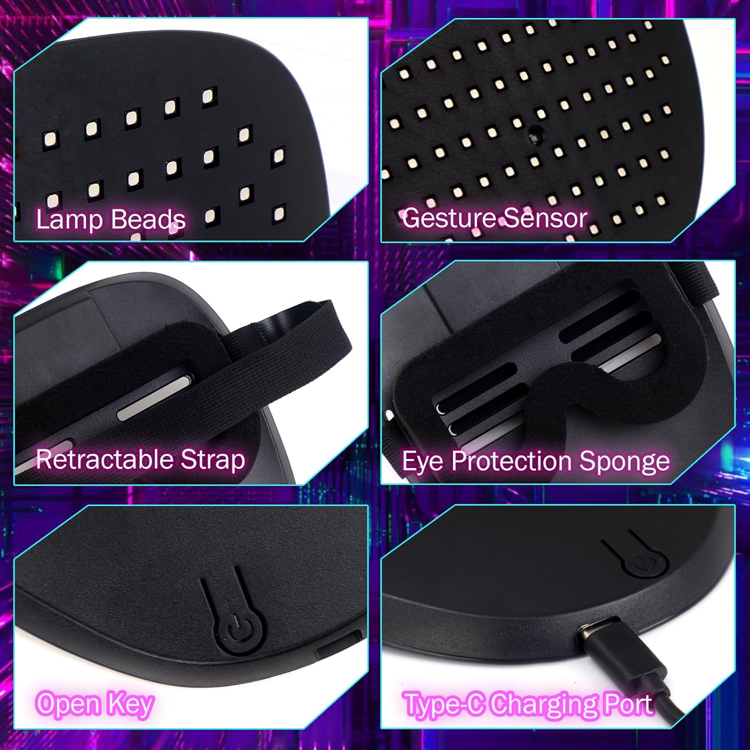 - 【Product Material】Crafted from durable plastic and soft sponge, this LED mask is built for all-day wear. Its ergonomic design, plush inner lining, and pre-cut eye holes guarantee a comfortable fit, even when worn for hours on end.