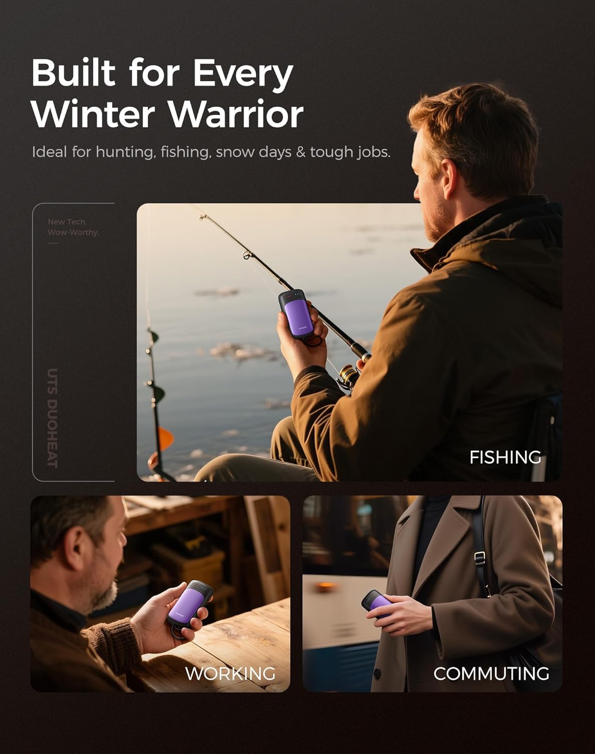 - Instant Full-Palm Warmth β Double heat area with the dual-sided electric hand warmers, heats up in just 3 seconds, full-palm warmth from palm to fingers, perfect for camping, hunting, fishing, hiking, or the daily winter outdoors.