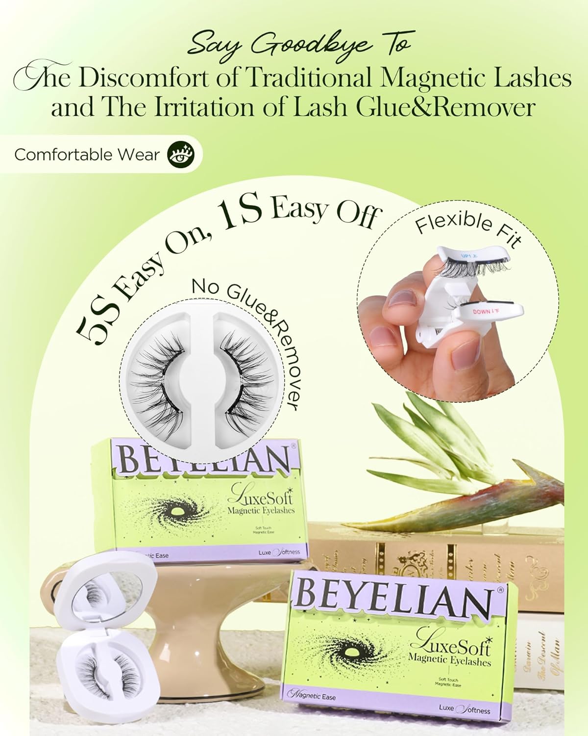 - Soft Magnetic for Ultimate Comfort - Crafted with ultra-soft magnetic strips, BEYELIAN magnetic eyelashes gently conform to your lash line, providing a lightweight, barely-there feel. The flexible band ensures a snug fit, enhancing your natural look without pinching or discomfort