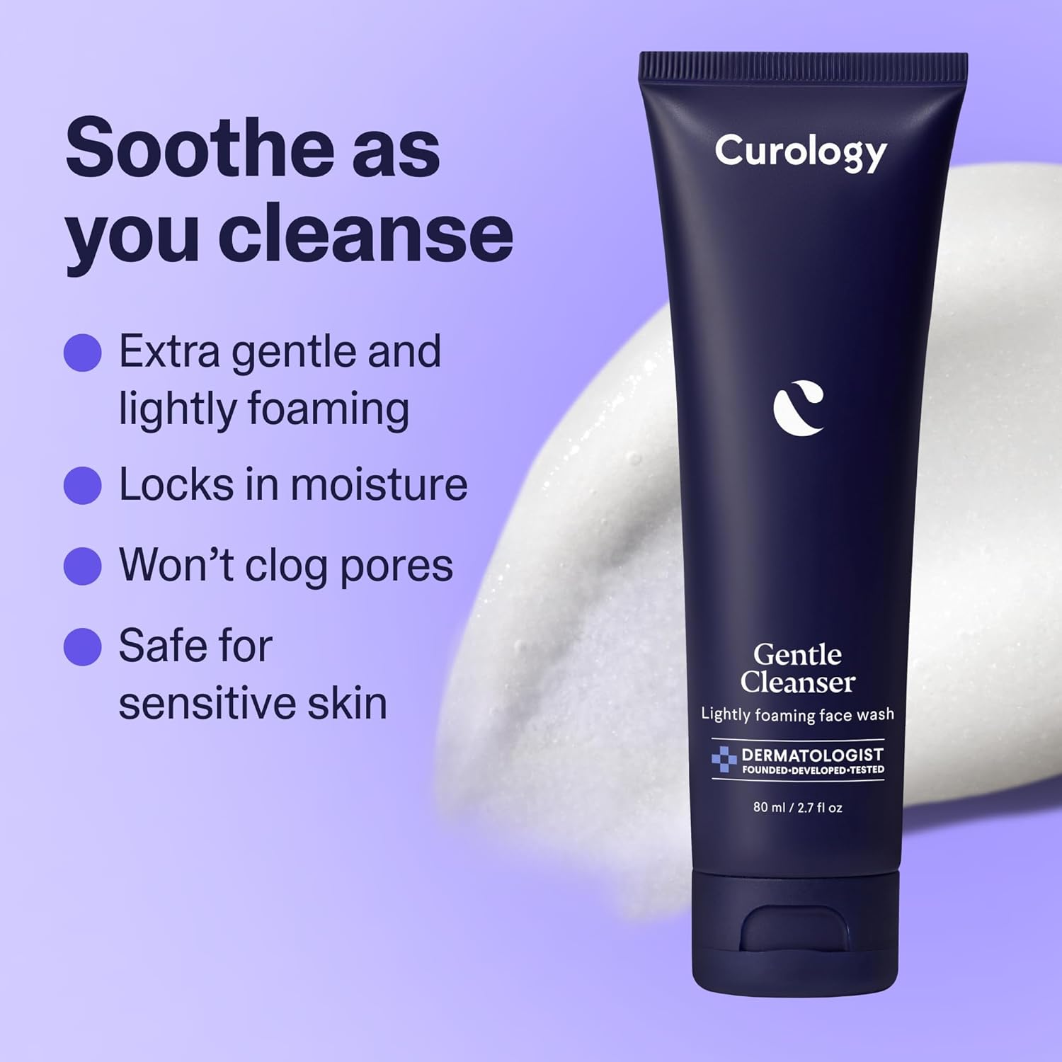 - GENTLE FACE CLEANSER – Lightly foaming gel formulated with hydrating glycerin and soothing oat extract that cleanses without stripping or clogging pores, leaving skin soft, calm, and smooth
