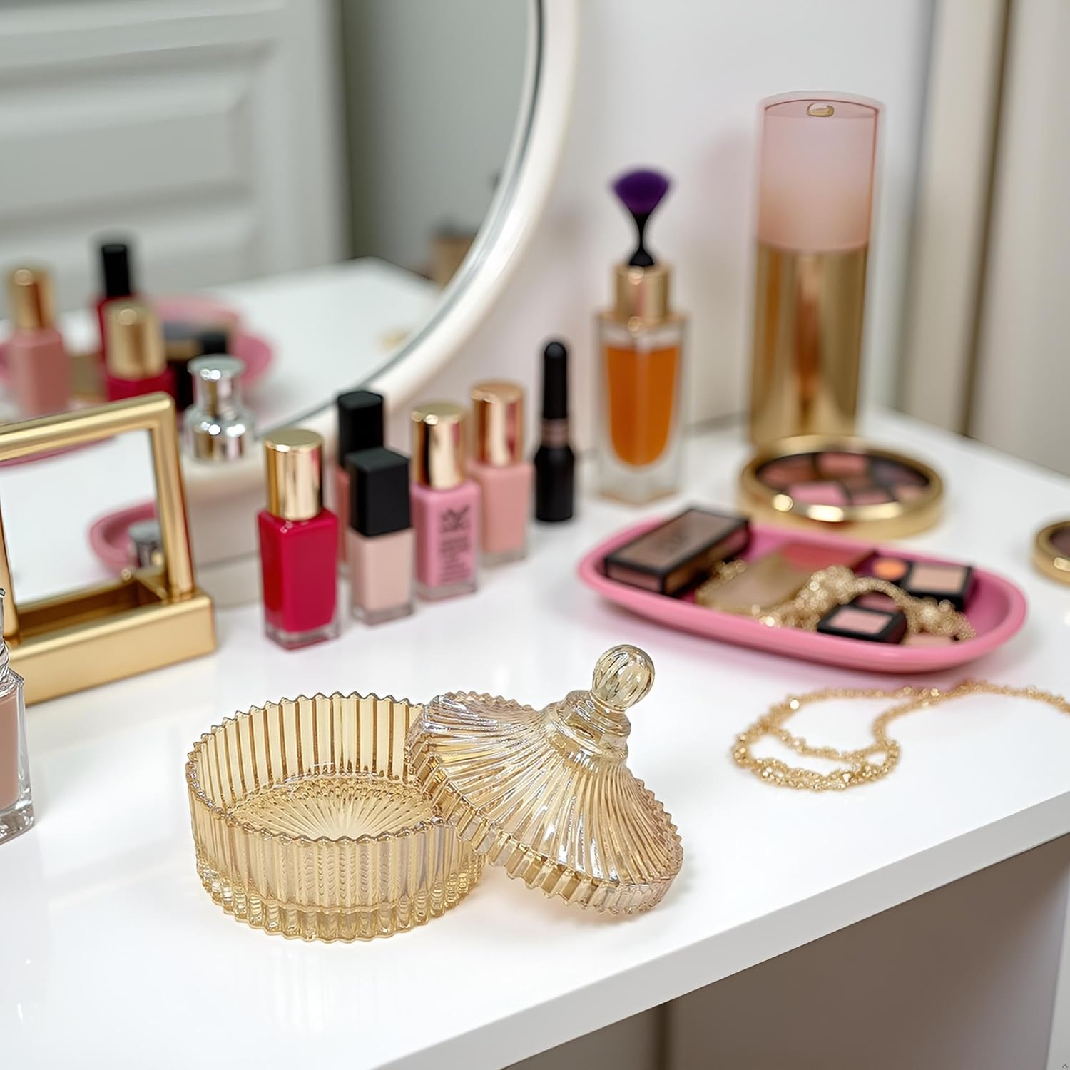- 【Durable & Easy to Clean】 This glass powder puff container is made of high quality glass material, beautiful and durable. This product is not a sealed jar, which is easy to clean and take care of daily, it doesn't take up too much space, but can store your daily trinkets and keep your items organized