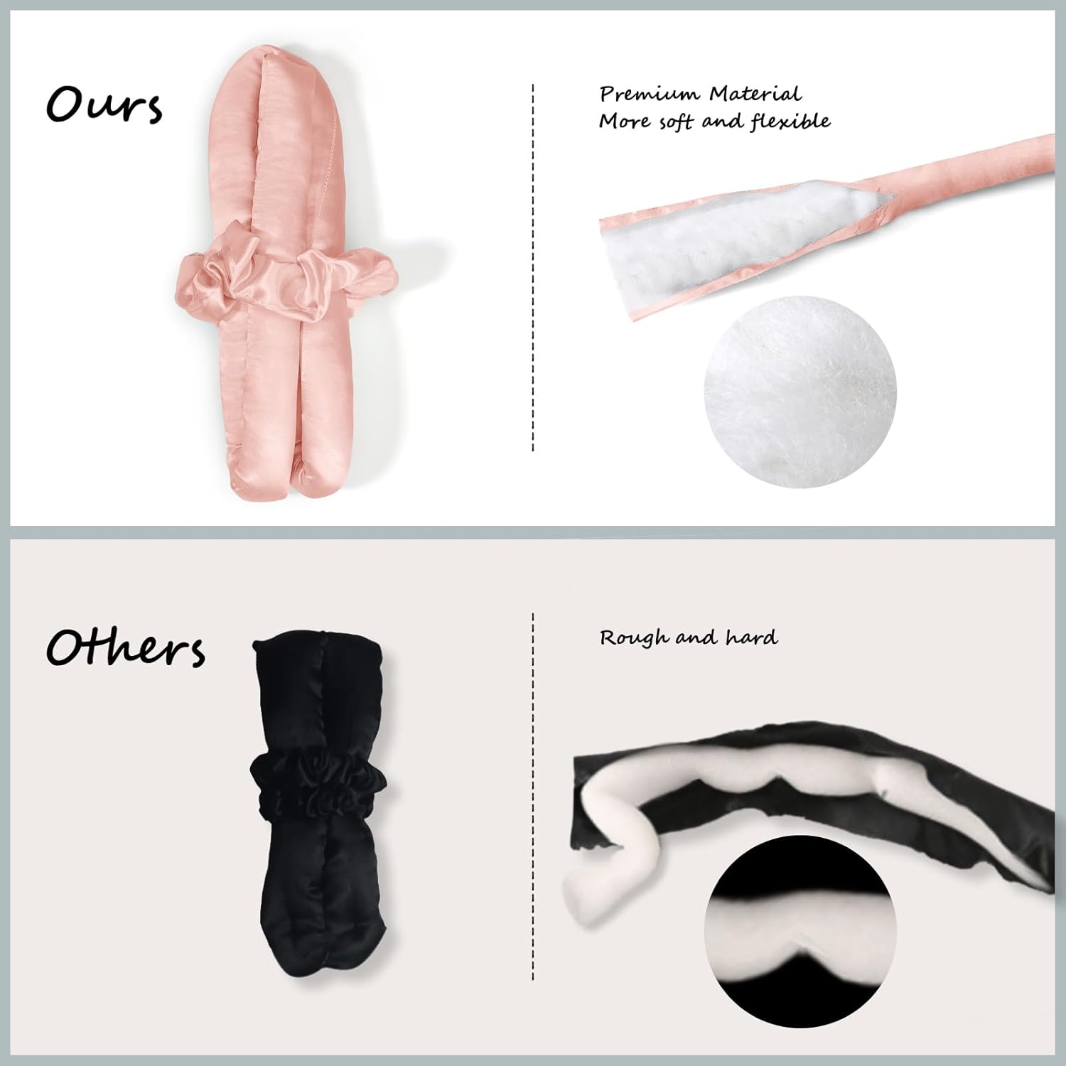 - 【Upgrade Satin Heatless Curler Band】 Upgraded curting headband is made of satin material outside and soft cotton fiber material inside; which is softer, and more comfortable to sleep in than the other versions. Our no-heat curler helps you hold the hair finalized and healthy easily.