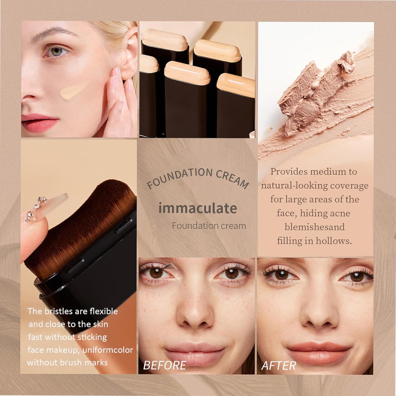 • Unique design - One end serves as a brightening beauty stick foundation, while the other end features a built-in brush, ensuring an even complexion after application.